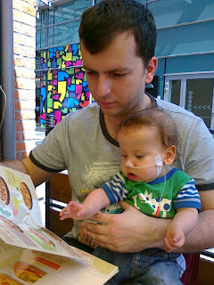 Kraków dzisiaj był pięknie ogrzewany przez słońce, w związku z czym Błażej mógł się lansować w pizzerii, co bardzo mu się podobało. Mimo że sam jadł swojego kurczaczka słoikowego, bardzo chętnie służył nam pomocą w wyborze dań. Karta dań okazała się zabawką dnia. A kiedy tylko dostaliśmy jedzonko, jak na zawołanie poszedł spać. I obudził się dopiero podczas przekładania do auta. Coraz bardziej ludzkie stworzenie się z niego robi.