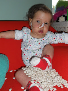 W ramach poznawania świata poprzez dotykanie różnych faktur dostał Błażej bardzo piękną fasolę, którą bedzie teraz regularnie przesypywał, oglądał, wyrzucał i co tam będzie uznawał za stosowne.