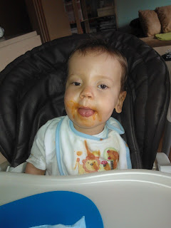 Dzień bezsondny przeciągnął się w bezsondną noc i kolejny dzień.Na razie Błażej dzielnie wcina dynię, zupę pomidorową i owoce.