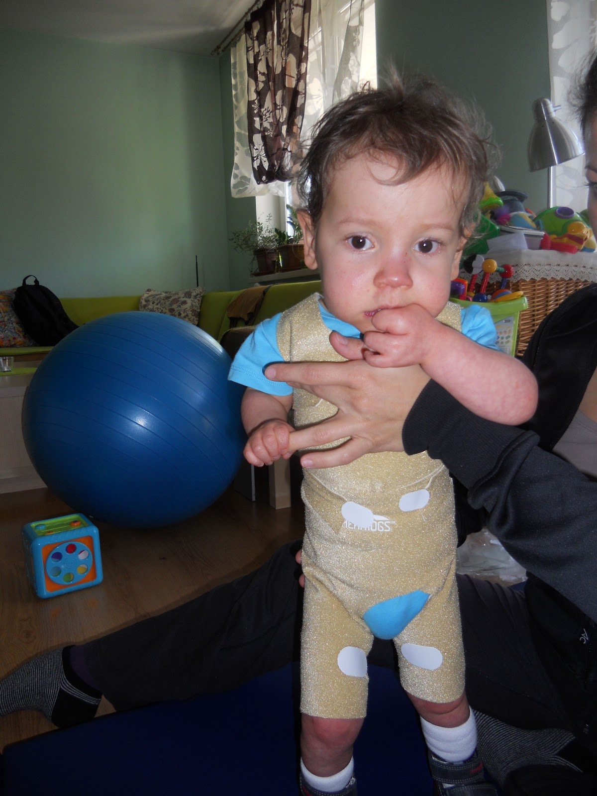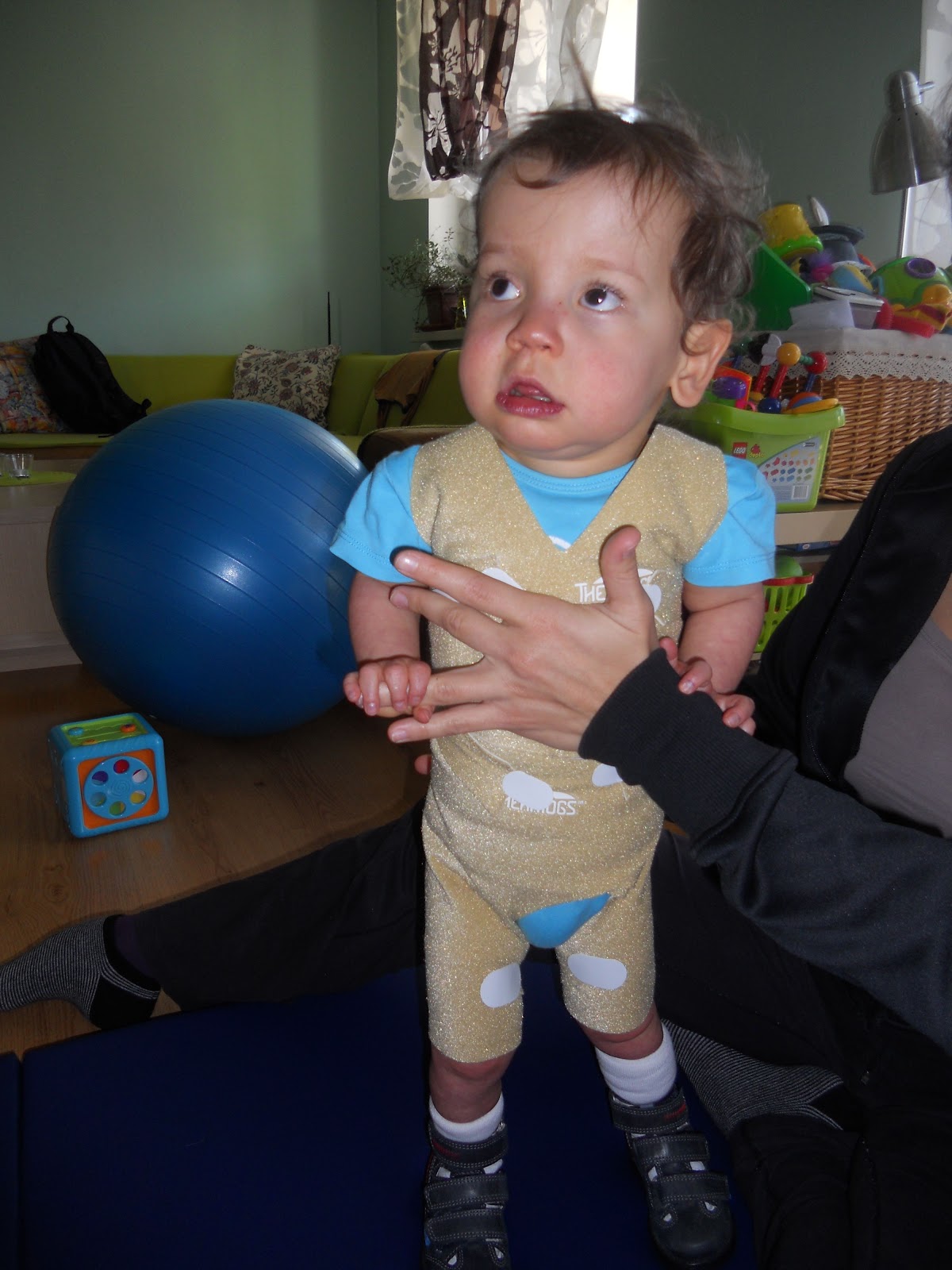 Błażej robi postępy. Codziennie ćwiczy podnoszenie głowy, leżąc na brzuchu na podłodze. Doskonale przewraca się z boku na bok i dopracowuje alternatywne, Błażejkowe metody przesuwania się w kierunku, gdzie tylko ma ochotę. Najchętniej w stronę pilota. Poza tym potrafi siedzieć kilka minut, kiedy na kanapie odlepi się od podparcia.