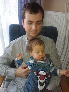 Błażejkowi nie służy halny. Jakoś nigdy nie wierzyłam w instnienie meteopatów, ale cóż, chyba z takim jednym, małym mieszkam. Od kilku dni, kiedy straszą wiatrem i faktycznie słychać i widać jego hulanie, Błażej dziwnie się zachowuje.Chodzi późno spać, dużo gaworzy wyrażając niezadowolenie, ale za to, odpukać, całkiem ładnie je. No i u krakowskich dziadków, gdzie zawsze chodzi spać podczas wizyt, wczoraj pięknie się bawił i siedział na kanapie. A dzisiaj przyjeżdża babcia radomska, zobaczymy, jak Błażej będzie się sprawował.
