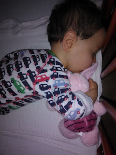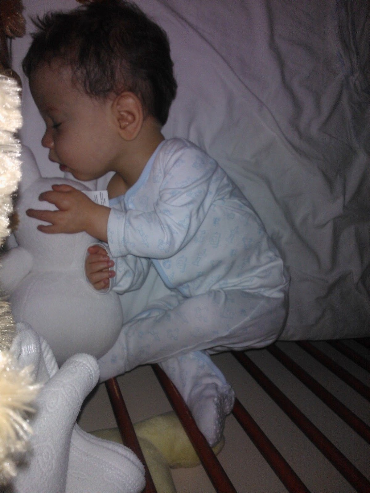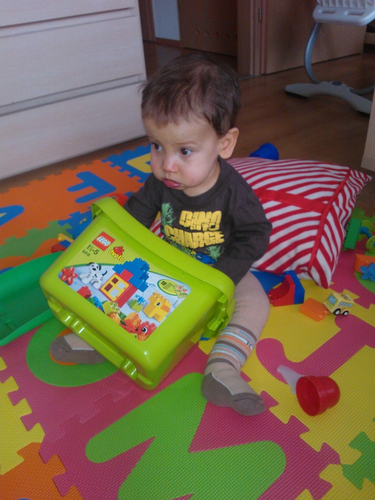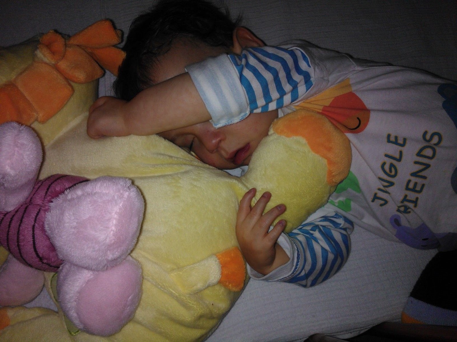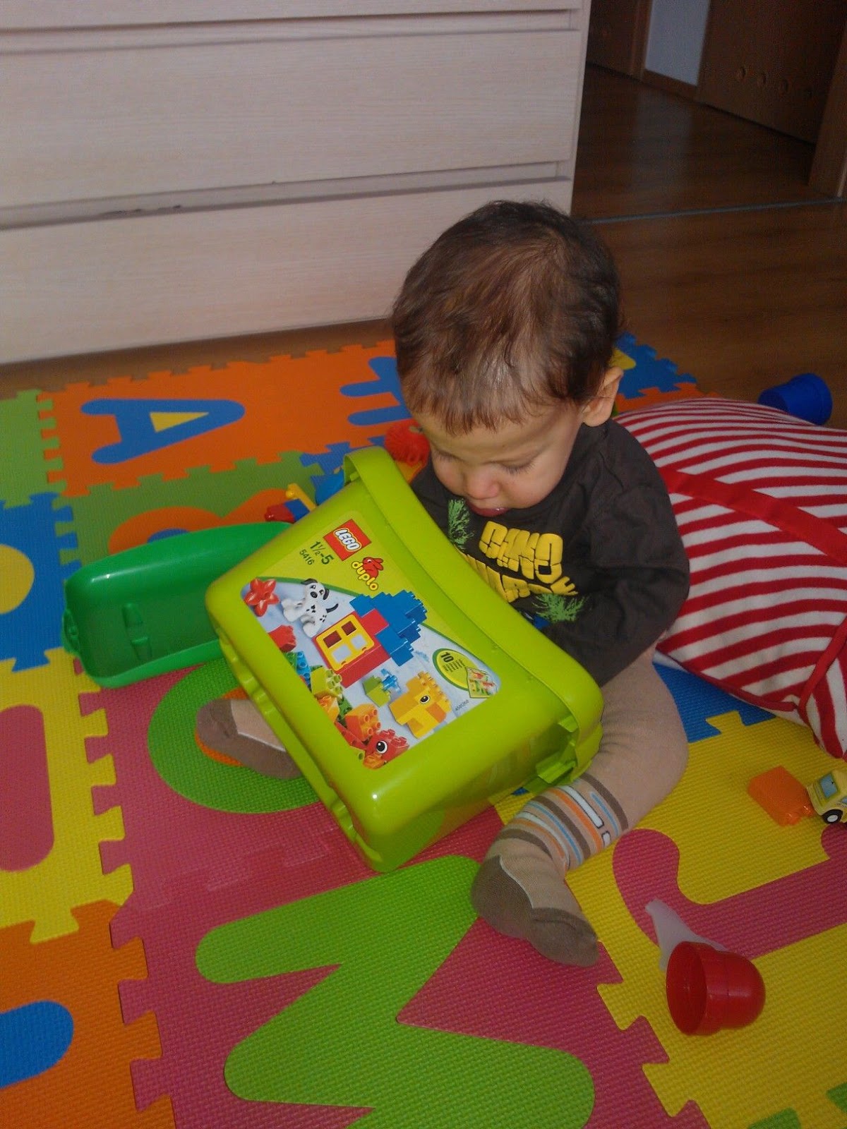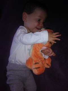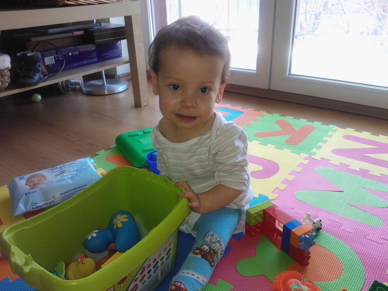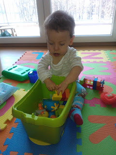 Żeby była zachowana równowaga między rozwojem fizycznym i emocjonalnym, Błażej  zaczął przytulać maskotki. Nigdy tego nie robił, nawet większość pluszaków mu schowałam, bo nie  przystawał do słodkiego obrazka z pocztówki, chłopca tulącego misia. Grzechotki i inne plastikowe zabawki tak, materiały, pieluszki jak najbardziej, ale maskotki odrzucał. Aż tu nagle, kilka dni temu, przed zaśnięciem Błażej zaczął głaskać Prosiaczka, tarmosić za uszka i przytulony do niego usnął. I robi to regularnie!