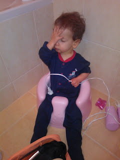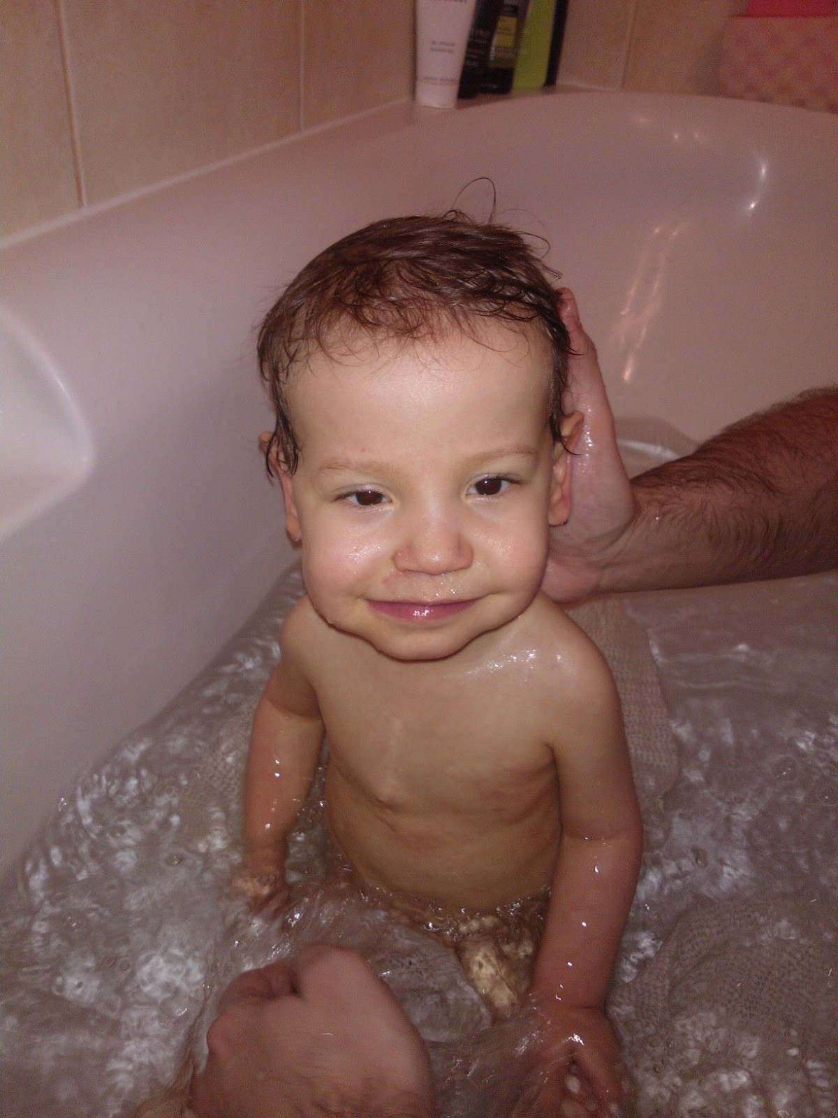 W związku z powszechnie panującą dżumą i tym, że i ja padłam jej ofiarą, Błażej ma wstrzymane wychodzenie gdziekolwiek. Musimy więc znajdować jakieś urozmaicenia domowe. Poza zwykłymi zabawami, podglądaniem TVN24 i chowaniem choinki, Bła postanowił wejść na wyższy stopień ablucji. Podczas porannych pozwala już na w miarę spokojne mycie zębów połączone z masażem wewnątrz buźki. Natomiast wieczorne nie odbywają się już w wiaderku, bo Błażuch stwierdził, że to jest dla maluchów i jemu tak nie przystoi. Kąpie się więc w prawdziwej wannie, doceniając tę czynność poprzez energiczne wymachy nogami i pryskanie wszędzie wodą. Na szczęście jeszcze nie cenzuruje zdjęć, więc zobaczcie sami.
