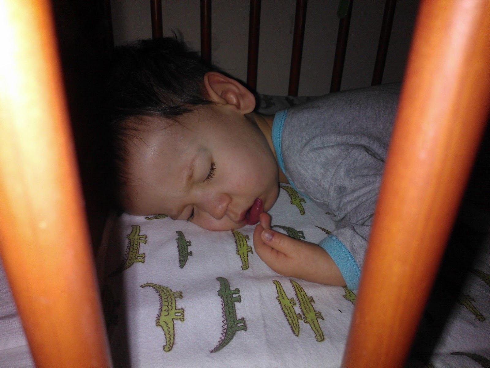 Za to w niedzielę pojechał do babci i dziadka do Huty. I zrobił to, co zwykle u dziadków, czyli awanturkę na dzień dobry i drzemkę. No ok, pobawił się też chwilę, i pouśmiechał i poflirtował.