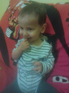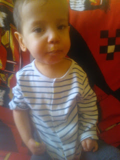 Tutaj trzeba wspomnieć, że Błażuch miał bardzo dużą nadwrażliwość na dotyk, szczególnie wokół i w buzi, na zapachy i na nieznane faktury. Od kiedy pożegnał się z sondą (wrzesień 2012r.) stopniowo odwrażliwiła się buzia i pozwala już na masowanie jej w środku i coraz więcej sam do niej wkłada, co kiedyś było nie do pomyślenia. Myślałam, że te wszystkie masaże i uciskania są w jego przypadku nieskuteczne, ale teraz dopiero widać, jaka jest ogromna różnica w Błażuchowym odbieraniu świata.