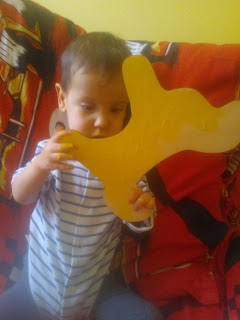 A poniżej popis Błażuchowych zdolności plastycznych, prawie samodzielnie pomalowany łapkami piesek(wiem, że jakość zdjęć jest okropna, ale były robione na szybko, na zasadzie „chwytaj dzień, chwytaj chwilę”):