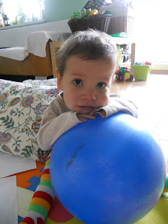 U Błażeja przyjemnie nudno. Niestety nie bardzo podoba mu się zmienność pogody i wstaje o bardzo dziwnych godzinach. O trzeciej na przykład, albo czwartej. Ale poza tym grzeczny i stawia ostatnio na rozwój mowy, a dokładniej śpiewu. Poważnie, to wcale nie są nasze czcze wymysły i wyolbrzymianie jego sukcesów. Kilka dni temu w jego zwyczajnych yyy,yyy… usłyszeliśmy melodię z ulubionej zabawki. I później powtórzyło się to kilka razy. Niestety kiedy tylko włączam aparat, a ten robi charakterystyczny klik przy uruchamianiu kamery, Błażej się chyba zawstydza i przestaje nucić. Może po prostu chce dopracować repertuar zanim posłucha go szersza publiczność.