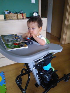 W końcu Błażej ma upragniony (przez nas;) pionizator. Kiedy kilka miesięcy temu, kiedy kawaler był przymierzany do tego sprzętu, to zrobił TAAAKĄ WIELKĄ awanturę i stanowczo odmówił brania udziału w całej zabawie. Za to dzisiaj, kiedy już dostał swój egzemplarz, z uśmiechem zgodził się na stanie. Zaczyna od dziecięciu minut dziennie, zobaczymy jak mu będzie szło.