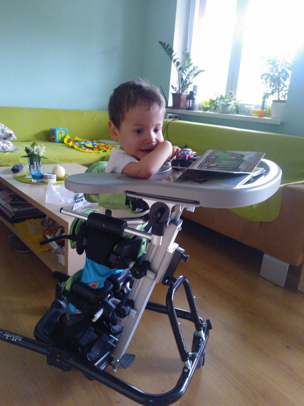 W końcu Błażej ma upragniony (przez nas;) pionizator. Kiedy kilka miesięcy temu, kiedy kawaler był przymierzany do tego sprzętu, to zrobił TAAAKĄ WIELKĄ awanturę i stanowczo odmówił brania udziału w całej zabawie. Za to dzisiaj, kiedy już dostał swój egzemplarz, z uśmiechem zgodził się na stanie. Zaczyna od dziecięciu minut dziennie, zobaczymy jak mu będzie szło.