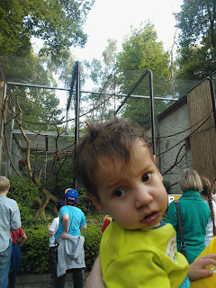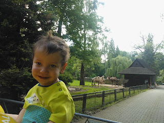 Dzięki Fundacji Alma Spei Błażej wybrał się do Ogrodu Zoologicznego. Ze wszystkich zwierząt najbardziej podobali mu się ludzie:) Odwrócony w stronę wielbłąda na przykład, od razu wracał z uśmiechem do współodwiedzających. A jego uwagę zwróciły jedynie małpki i nawet bił im brawo. Poza tym, że oczywiście siedemdziesiąt pięć procent wycieczki przespał:) Szkoda, bo dzieci karmiły osiołki i miałby taaakie ekstra zdjęcie. Ale cóż, Błażej sam zarządza swoim czasem.