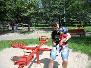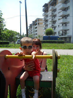 A w wolnych chwilach Bła śmiga na spacerki i nawet korzysta z dziecięcych urządzeń, tak oto: