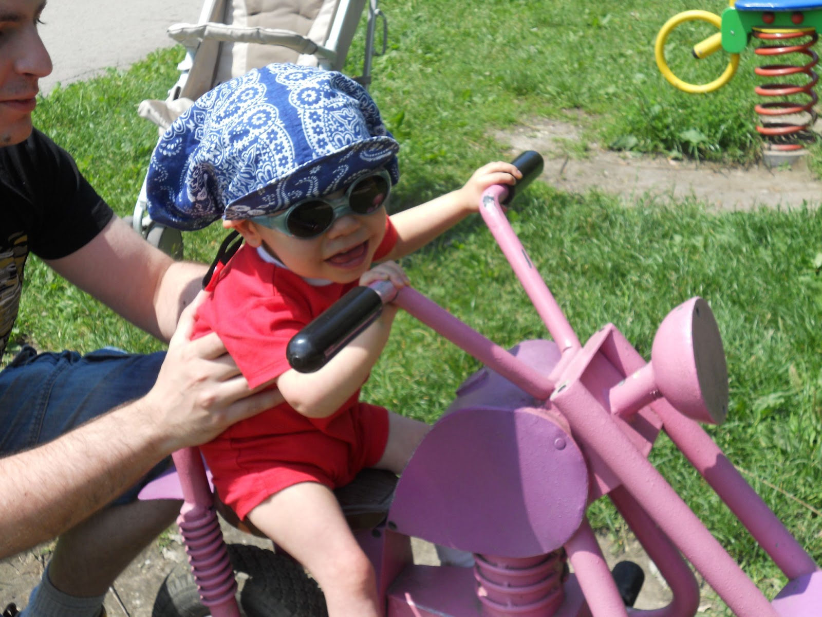 A w wolnych chwilach Bła śmiga na spacerki i nawet korzysta z dziecięcych urządzeń, tak oto: