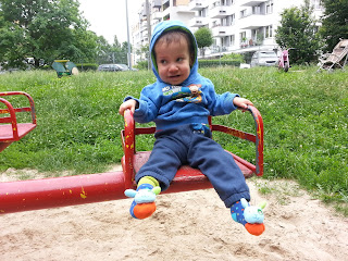 A Błażej na razie od czasu do czasu pokaże gest „jeszcze” i tyle:) Za to z radością chodzi na plac zabaw. Tak, tak, potrafi sam siedzieć na huśtawce!