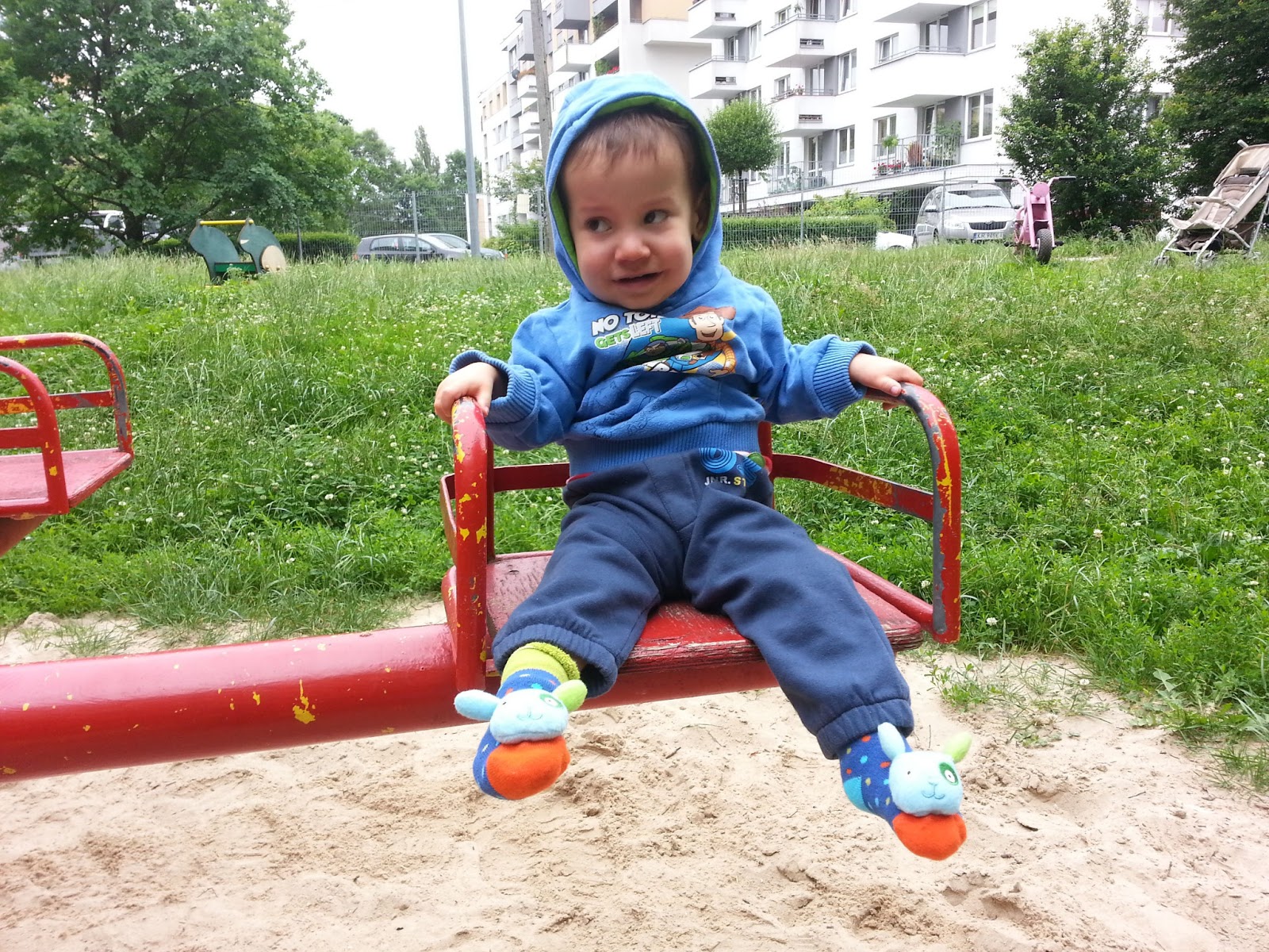 A Błażej na razie od czasu do czasu pokaże gest „jeszcze” i tyle:) Za to z radością chodzi na plac zabaw. Tak, tak, potrafi sam siedzieć na huśtawce!