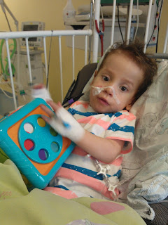 U Błażejka w porządku, ma powolutku ostawiany corotrope, może się w końcu uda. Poza tym zaczęli już ustalanie dawki acenokumarolu, czyli leku przeciwzakrzepowego. Błażejek wymaga od pań pielęgniarek dużo uwagi, bo zaczyna mu się nudzić. Ogląda też sobie telewizorek, najbardziej lubi teledyski disco polo:) Aż podskakuje z radości:) Słucha też radia, gra sobie zabawkami, jakoś mu czas mija. A my odliczamy do jego powrotu.