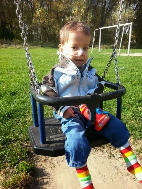 Pierwszy dzień w przedszkolu minął Błażejkowi wspaniale. Były wszystkie, czyli cztery, koleżanki a panie miały ręce pełne roboty. Bła tylko chwilę płakał gdy wychodziłam, a małpka-grająca przytulanka ratowała sytuację. Na muzykoterapii tak się podekscytował, że aż zwymiotował, tyyyle się działo, a nieprzyzwyczajony Błażuś musiał odreagować. Siedział też z koleżankami przy stole podczas śniadania, chociaż sam nie chciał jeść, ale łyżeczkę trzymał bardzo dzielnie:) Niestety nie udało mu się usnąć, mimo że był baaardzo zmęczony, więc skończył zajęcia wcześniej. Został pochwalony, że jak na pierwszy dzień wszystko poszło świetnie i super sobie poradził. Za to jak wrócił do domu to spał i spał:)