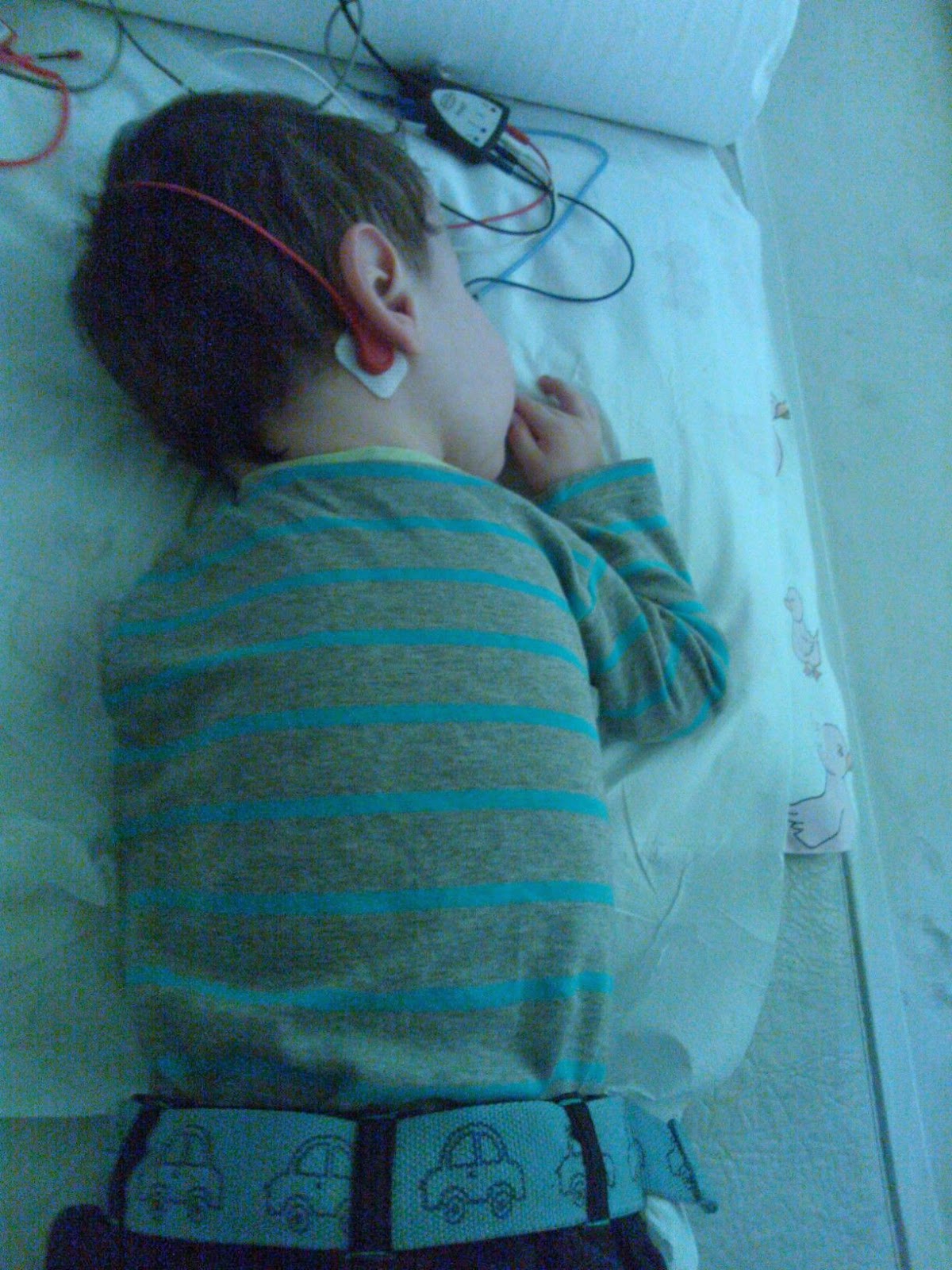 Ale w końcu się udało, Błażuś dojechał na badanie tramwajem – z krzykiem, podczas drogi powrotnej bił brawo. Przespał się z kilkoma diodami przyklejonymi za uszami i okazało się, że lewe ucho jest w normie, a prawe ma lekki niedosłuch, z którym nic się nie robi, tak lekki jest:)