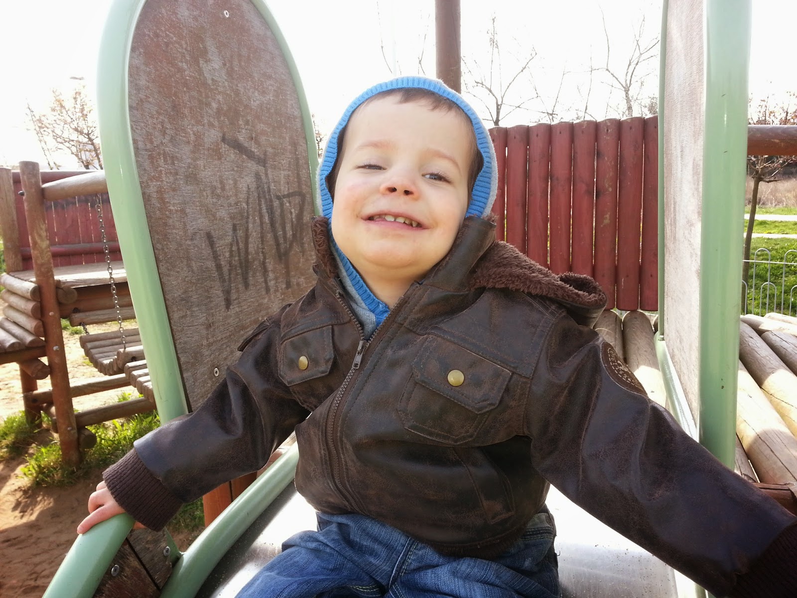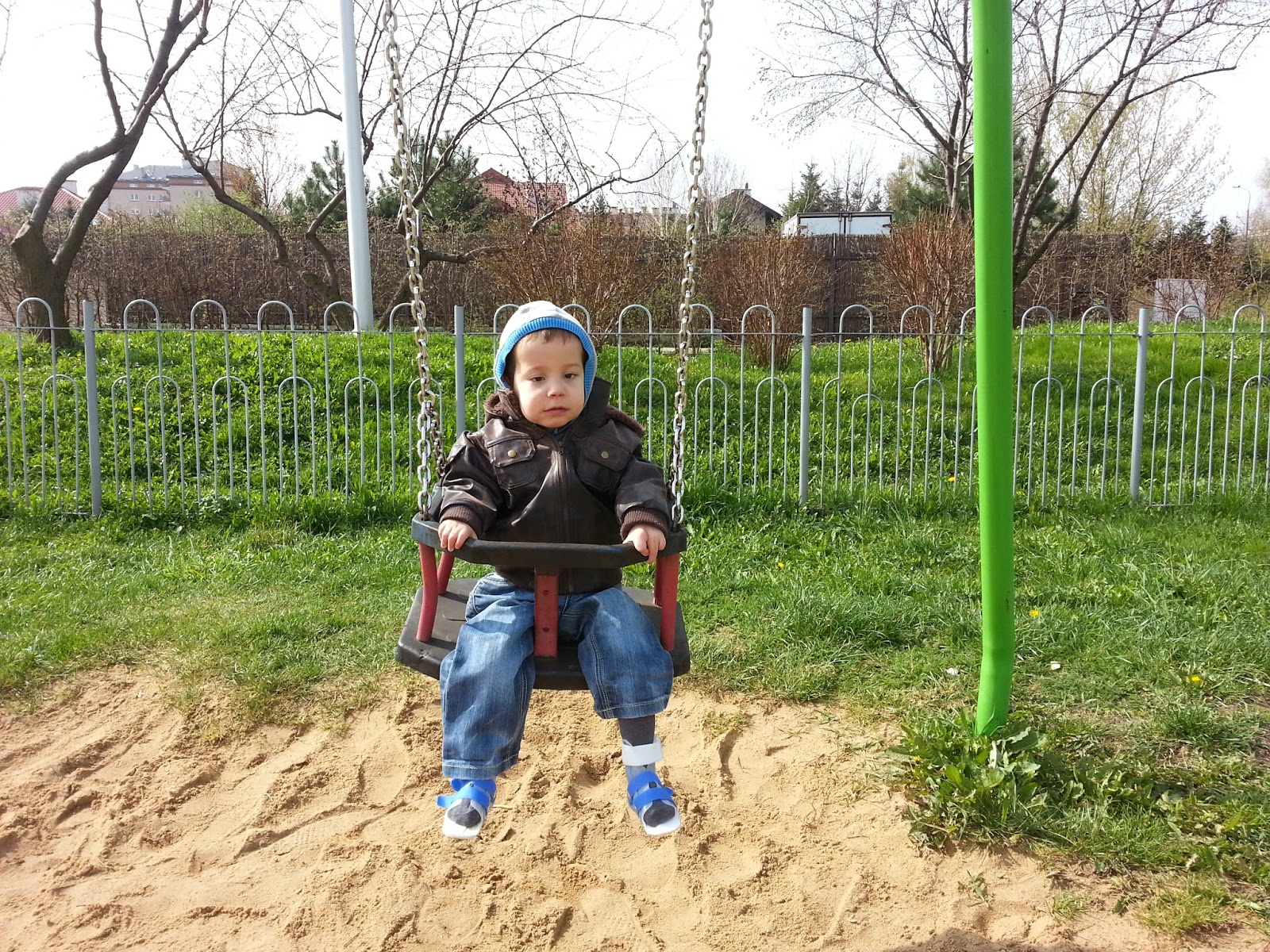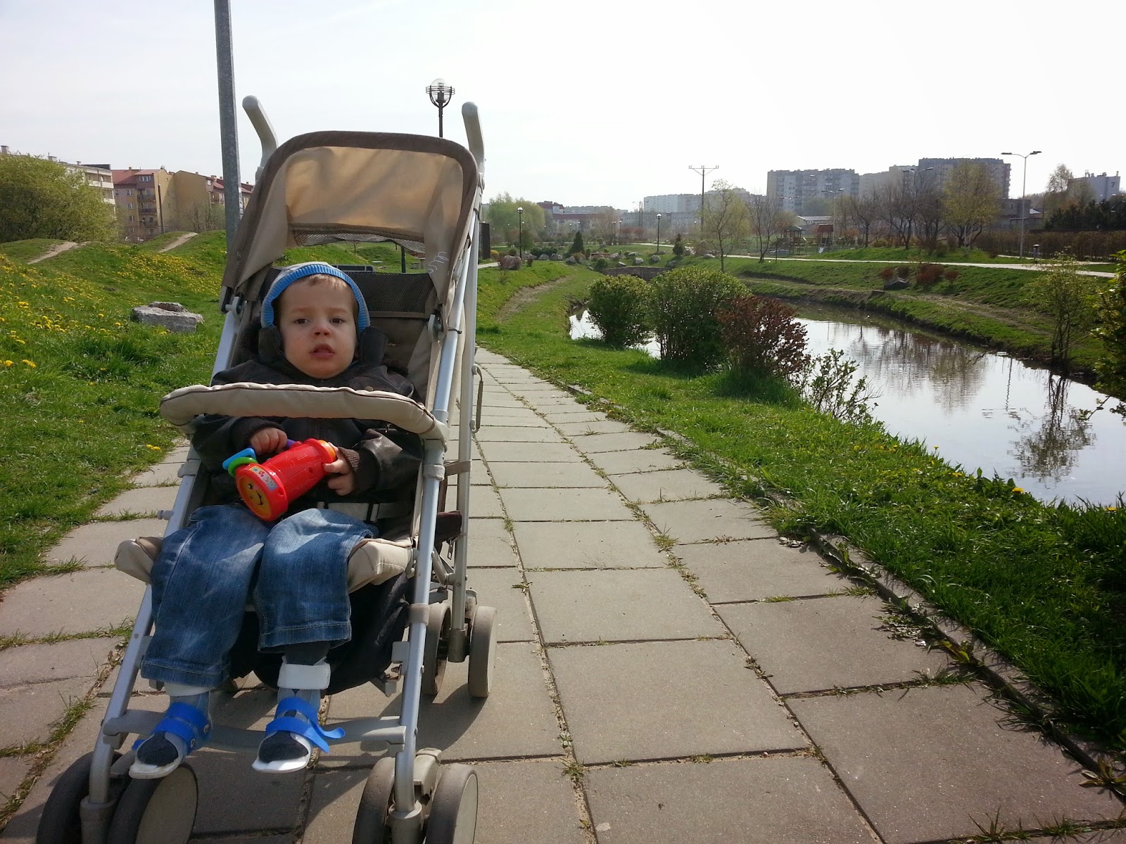 Błażejek po rocznej nieobecności w Radomiu zawitał do niego w ostatnią sobotę. Było pięknie, zapowiadała się słoneczna pogoda, ale niestety dzisiaj cały dzień pada. Na szczęście w jeszcze ładny weekend Błażej zdążył pozwiedzać okoliczne place zabaw i mówi, że są nawet niezłe. Niestety zmienna aura nie wpływa dobrze na jego apetyt i trzeba go mocno zmuszać do przyjęcia koniecznej porcji płynów. Poza tym ćwiczy stanie, dzielnie znosi ortezy i czasem coś narysuje.