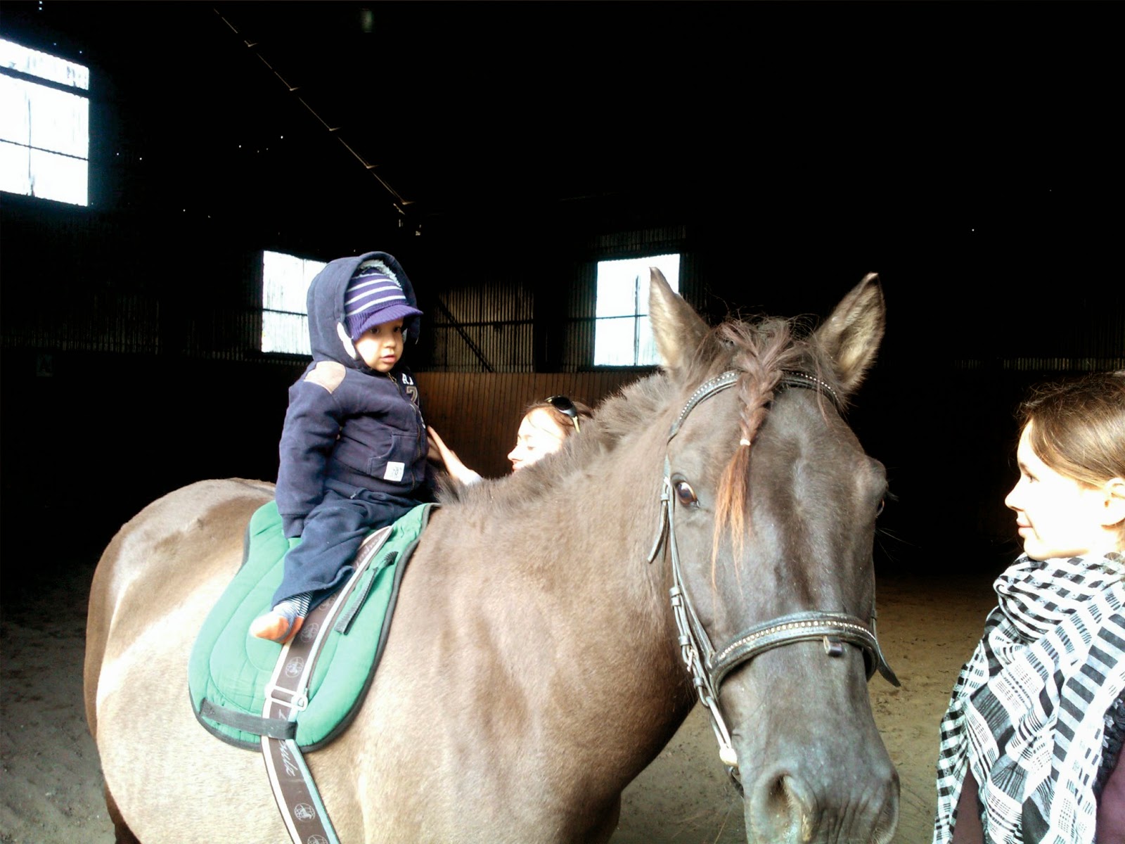 Dzisiaj Błażej nie poszedł do przedszkola, ponieważ ma katar. Niewielki, więc mam nadzieję, że szybko się go pozbędzie i będzie mógł wrócić do normalnego trybu dnia. Na szczęście w poniedziałek było wszystko w porządku i mógł pojeździć na koniku. Tym razem na Wiośnie:) Bardzo dzielnie zniósł dziwne dzwięki przez nią wydawane. Wiosna co jakiś czas mówiła coś do swojego źrebaka. Nawet ja się przestraszyłam, a Błażej bardzo dzielny:)