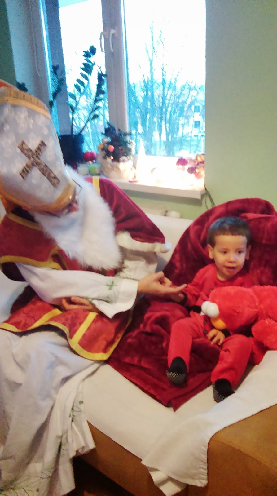 Gdy Mikołaj dotrze do przedszkola, Błażej będzie szpanował, że on już spotakał się z Mikołajem i nic się nie boi – tak zrobił rok temu.