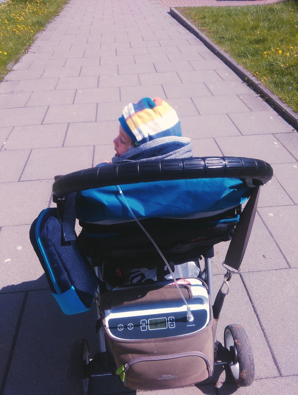 Gdyby nie przenośny koncentrator tlenu Błażej byłby skazany na siedzenie w domu, a to byłaby dla niego najgorsza kara i wielki smutek (i dla nas też).