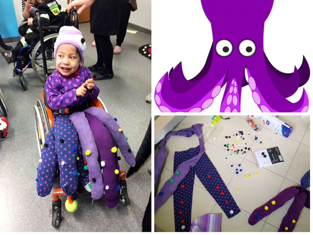 Błażej nie rozumie po co właściwie ma się przebierać, nie wie, czym jest Bal Przebierańców, ale zawsze staramy się, żeby wyglądał oryginalnie. Oczywiście sami mamy przy okazji sporo zabawy z wymyślaniem i tworzeniem strojów. A to tegoroczny efekt: