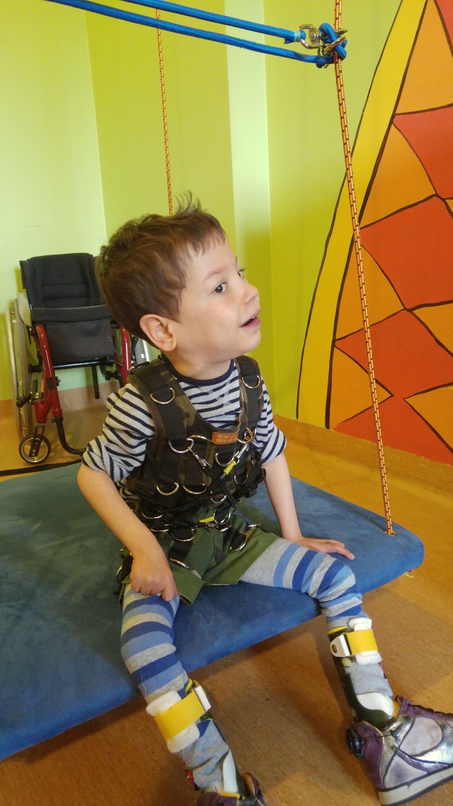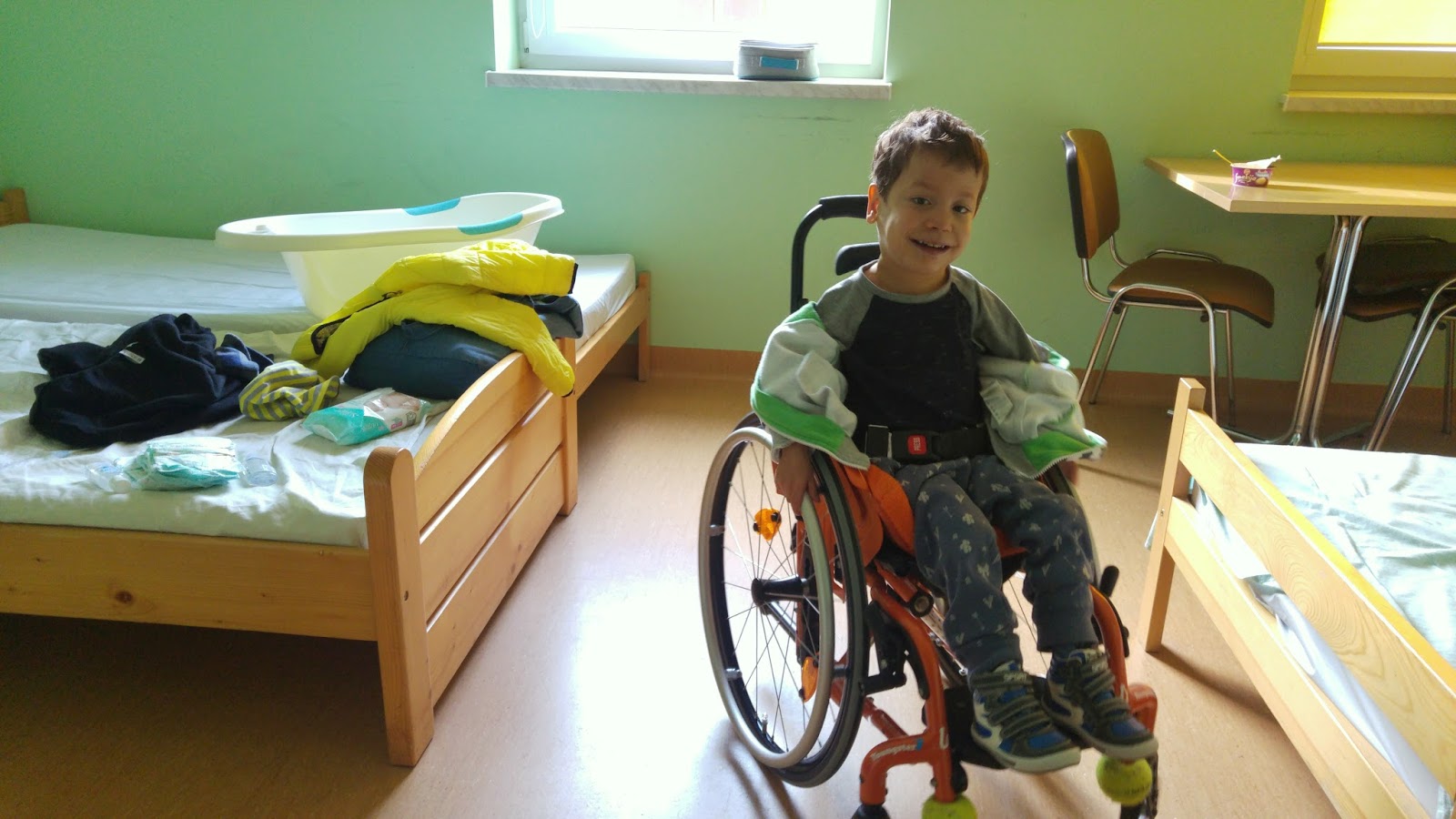 Błażej jeździ do ośrodka Michałkowo w Bystrej. Niestety tym razem spędziliśmy tam tylko tydzień, bo Błażejek był podejrzany o bycie przeziębionym i po kilku godzinach spędzonych na miejscu musieliśmy wrócić do domu. Ale dobry i tydzień. Jest to zawsze też impuls do różnych nowości. U nas będzie to na pewno zmiana balkonika, przy którym Błażej uczy się chodzić.